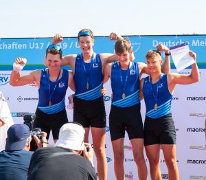 Den Auftakt machte am Donnerstag Tobias Weber im Junior B Vierer ohne Steuermann. Gemeinsam mit seinen Teamkollegen aus dem Ruderklub Aschaffenburg, Waginger Ruderverein und der Rudergesellschaft München belegten sie im Vorlauf nur knapp den dritten Platz und verpassten damit den Direkteinzug ins Finale. Nach einer Trainingseinheit am Freitag startete der Bayern Vierer im Hoffnungslauf am Samstag besser ins Rennen und konnte sich mit einem zweiten Platz einen Startplatz im Finale sichern. Für das Finale am Sonntag bündelten die Vier noch einmal alle Kräfte. An der 1000m Marke lagen sie noch gleich auf mit dem Zweitplatzierten Boot und zündeten dann 500m vor dem Ziel ihren Endspurt, in dem sie sich vom favorisierten Boot aus dem Norden absetzen konnten und mit einer Sekunde Vorsprung den deutschen Meistertitel im U17 Vierer ohne Steuermann gewannen. Tobias Weber startete außerdem im Junior B Achter. Auch dort musste das Team der Renngemeinschaft Passau, Aschaffenburg, München, Waging und Schleißheim den Umweg über den Hoffnungslauf nehmen, konnten sich aber auch hier mit einem zweiten Platz für das Finale qualifizieren. Im Finale konnte der Bayern Achter nicht mit den führenden Booten mithalten und beendete das Rennen mit dem sechsten Platz.